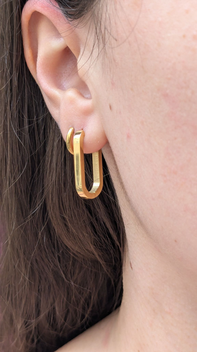 Paire de boucles d'oreilles créoles texturées en acier inoxydable (couleur dorée) que tu peux personnaliser avec nos charms interchangeables. (Les charms sur la photo ne sont pas inclus dans cet article.) Cela te permet de composer l'ensemble selon ton goût et de changer de look en fonction de ton humeur. 🫶